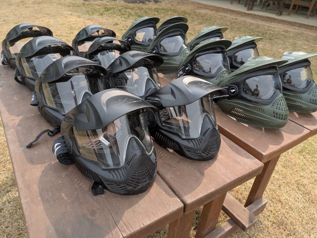 目や顔を保護します。ペイントボールでは絶対に必要です。ゲーム中は外さないでください。